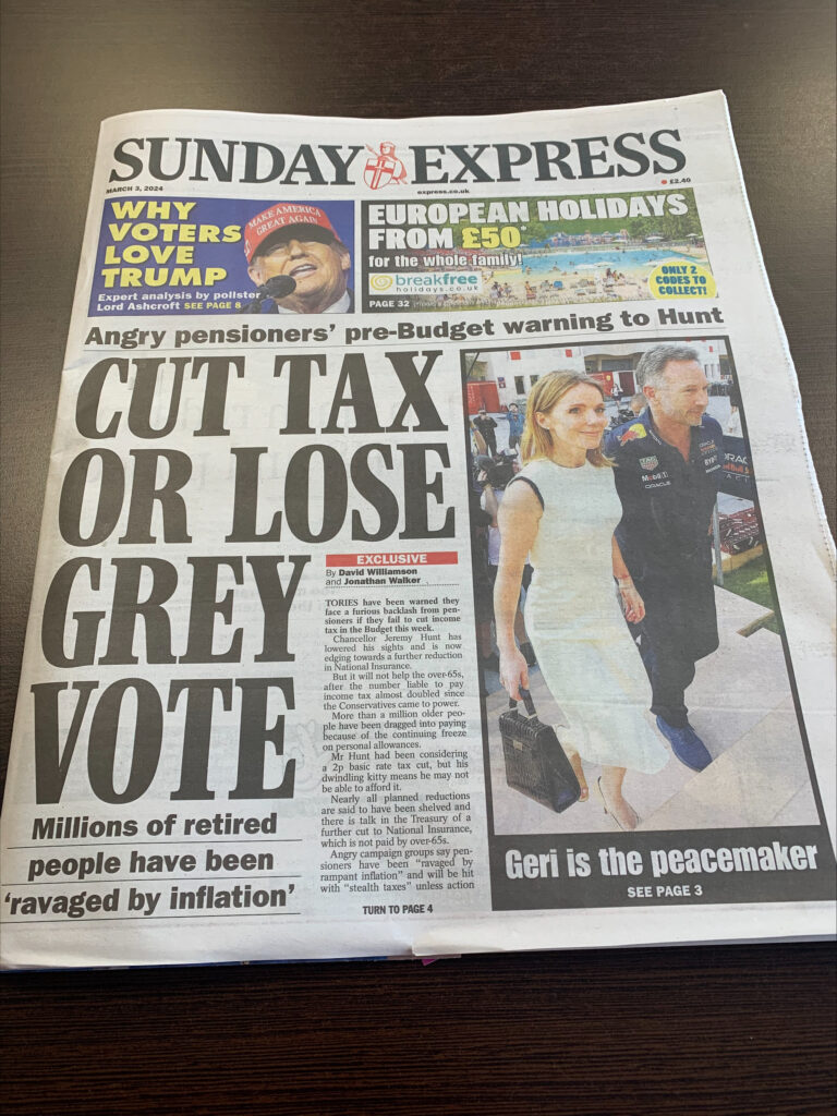 We were therefore pleased to see the story taking centre stage and the front page over the weekend. https://www.express.co.uk/news/politics/1873070/Fury-over-Budget-threat-to-ignore-pensioners